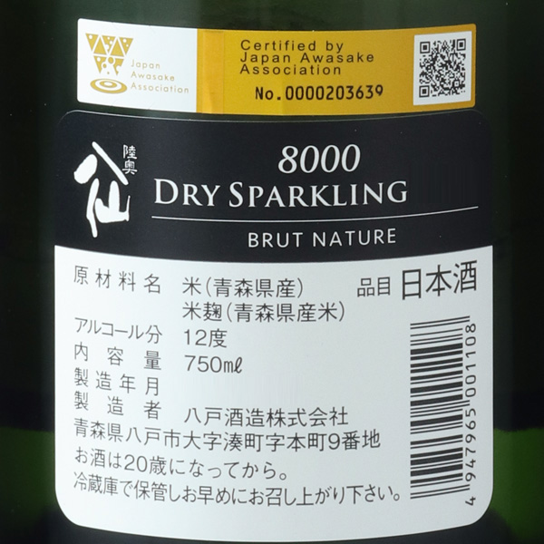 商品開発から3年をかけ、シャンパーニュ製法 (瓶内二次発酵)で仕込む日本酒スパークリングが誕生しました。青森県産 吟烏帽子を磨き、全て手作業で丁寧に醸しました。一切ドサージュ(補糖)せず、白麹由来のキレイな酸がドライでシャープな仕上がりとなっています。注意事項
