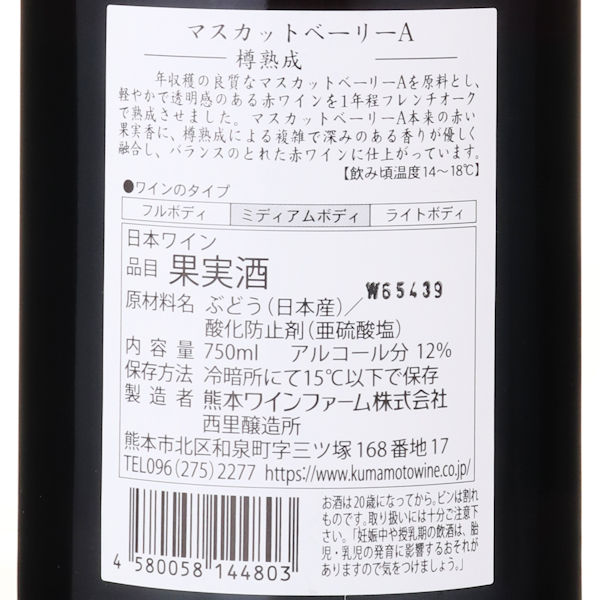 マスカットベリーA 樽熟成 2022 / 熊本ワインファーム