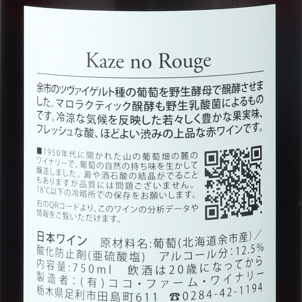 風のルージュ 2020 / ココ・ファーム・ワイナリー