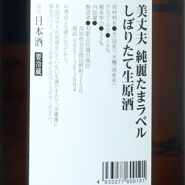 美丈夫 純米吟醸 純麗タマラベル しぼりたて生原酒