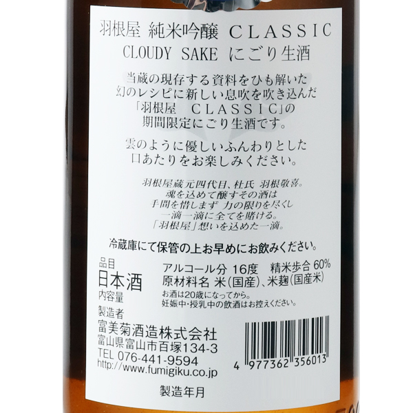 羽根屋 純米吟醸 CLASSIC CLOUDY SAKE にごり 生酒