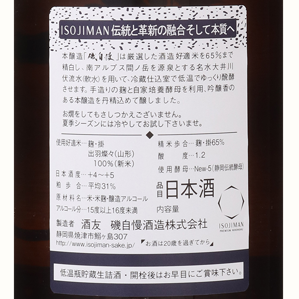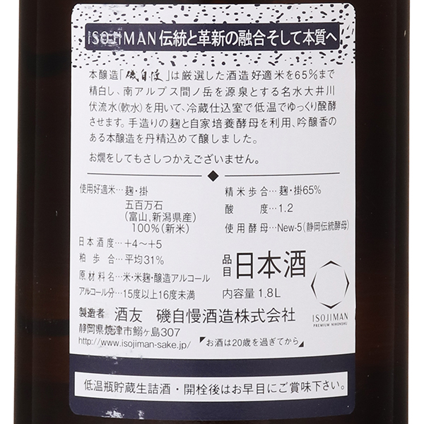 地元で愛されるいつもの磯自慢!コスパ抜群、磯自慢といえばやっぱりコレ!という方も多い一番スタンダードな本醸造。通常県内でしか流通していないことから略して県本と呼ばれています。蔵紹介