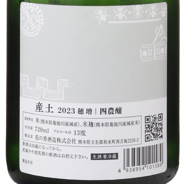 花の香酒造の哲学である「産土」は、土着の生産風土と祈りの精神で醸す酒造りをしています。近年、奇跡的に復刻され、自社農地と菊池川水系の農家で自然栽培した江戸時代の熊本在来種「穂増(ほませ)」で仕込んだ稀少な日本酒です。バナナやパインを思わせる華やかな香りと、土地特有の大地の恩恵、酵母をはじめとした微生物の多様性が醸すニュアンスが、複雑な味として重なり響き合う、まさに唯一無二の酒です。注意事項