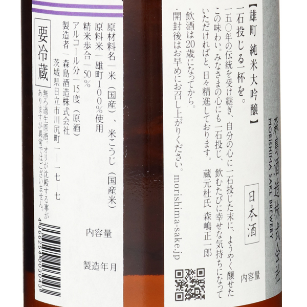 六代目となる現蔵元の森嶋正一郎さんが蔵に戻ると、受け継がれてきた歴史を守ると同時に、地元農家との契約栽培、酒質向上のための設備導入などにも意欲的に取り組み、茨城県出身者として初となる南部杜氏試験に合格。そして平成27年より蔵元杜氏と社員での酒づくりを開始しました。