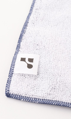 銘酒「而今」の銘柄名が入った蔵元オリジナルの今治ミニタオルです。普段づかいにピッタリなサイズ感で、表は紺地に白く浮かび上がる「而今」の文字。裏にはブランドロゴのタグが付いています。縦約25cm×横24.5cm