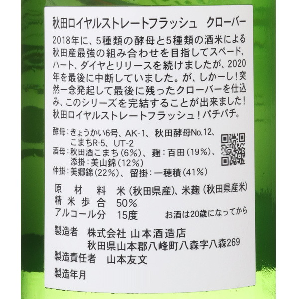 山本 純米大吟醸 秋田ロイヤルストレートフラッシュ クローバー