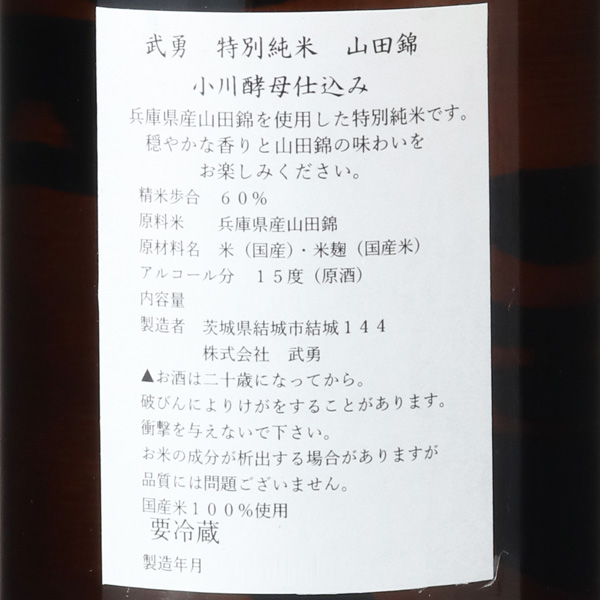 武勇 特別純米 山田錦 小川酵母仕込み