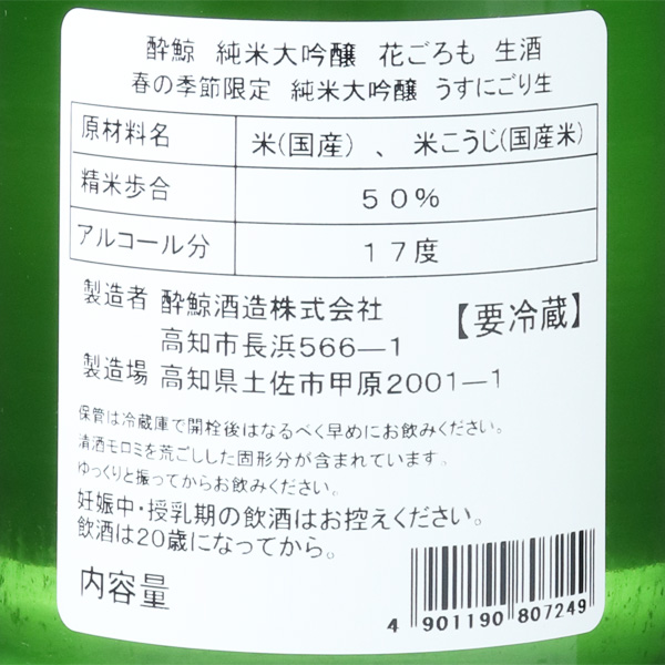 【予約商品】3月8日以降 出荷予定 酔鯨 純米大吟醸 花ごろも うすにごり生酒