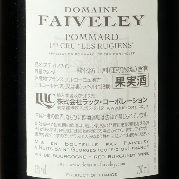 フェヴレが07年に取得した、ポマールでも秀逸なプルミエ・クリュ。自社畑の面積は0.51ha。53年と86年に植樹されています。深みのあるルビーからガーネット。よく熟したラズベリー、カシス、ダークチェリーなどの果実香に、スパイスや獣肉のニュアンス。キメ細かなタンニンがストラクチャーを形成し、力強い。スパイシーな余韻が長く続く。フェヴレからプルミエクリュのバックヴィンテージが入荷!本当にこの価格で良いの?と思ってしまうほどのコストパフォーマンス。ポマールでも秀逸な畑のリュジアン、味わいも熟成感が混じり飲み頃に入ってます。