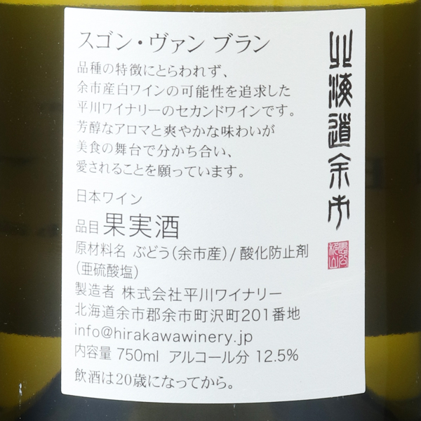 スゴン・ヴァン ブラン テール・ド・ヨイチ 2019 / 平川ワイナリー