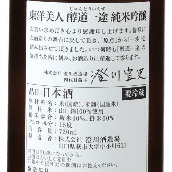 東洋美人 純米吟醸 醇道一途 じゅんどういちず 720ml