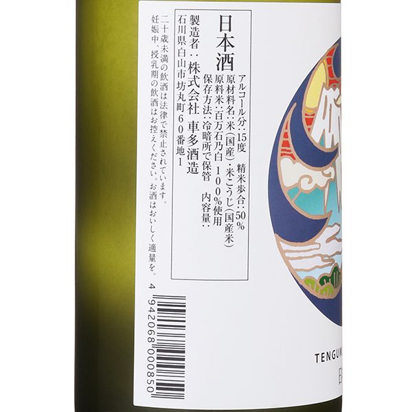 八百万の一滴車多酒造は文政6年、1823年創業。霊峰白山を望む加賀平野、白山から湧き出る清らかな伏流水と加賀平野に実った良米、手造りにこだわり、天狗舞では多くの日本酒を山廃仕込で醸しています。七代当主の車多壽郎と杜氏の中三郎が心血を注いで築き上げた天狗舞流の山廃仕込、その伝統を引き継ぎ毎年細かな改良を重ねて現在に至っています。天狗舞が追い求めているのは飲んで旨い酒を熟練の蔵人が醸す、本物の酒造りの伝承です。ただ単に教わるだけでなく、技を盗み、守り、壊し、新しい伝統を若手に創ってほしいと願い育てています。過去から現在へと継いできた技を、そして酒造りの喜びを次代へ継承し、白山の地で絶えず酒造りを繋いでいます。