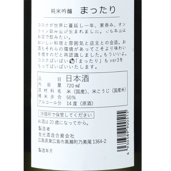 原酒で14度台に造られた純米吟醸で、ピチピチとしたフレッシュなガス感がTHEカモキンstyleなお酒です。昨年5月に「家呑み まったり」として発売され、猫の絵柄が日々の緊張から解きほぐされると評判に。その絵柄もヘソ天→アンモニャイト→そして今回のコロナばいばいとなりました。蔵紹介