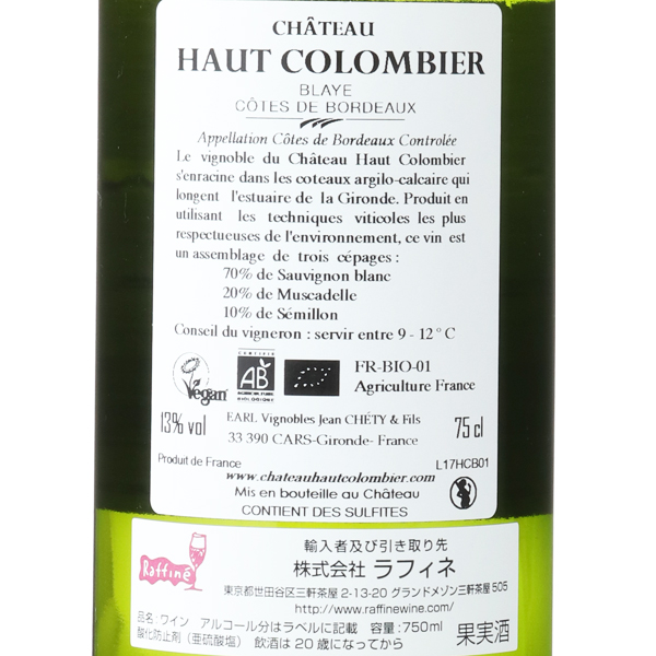 シャトー・オー・コロンビエ・ブラン 2017 / CH.オー・コロンビエ