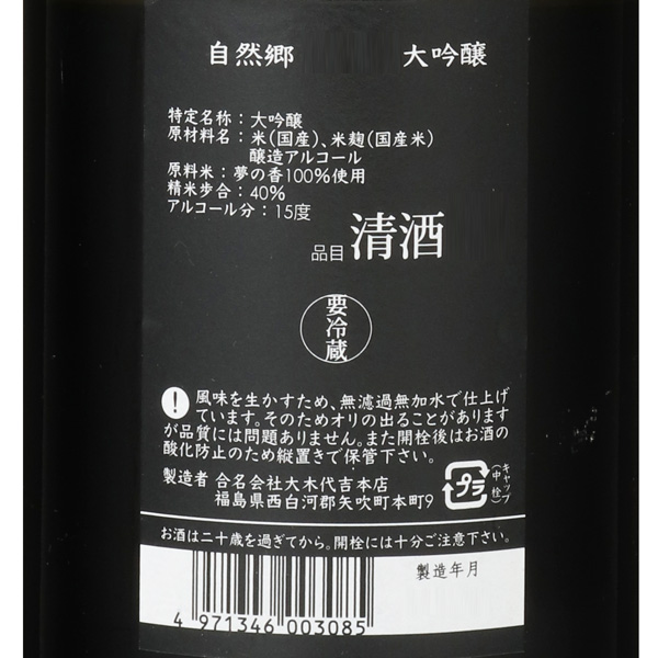 自然郷 大吟醸 03BY 無濾過原酒