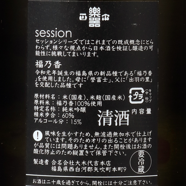 福島県で改良を重ね、待望のデビューを果たした酒米「福乃香(ふくのか)」。福乃香は心拍が大きいことから雑味が少なく、また溶けやすいことから香りが高くなる性質があります。本品は福乃香の質感を大切に甘味、酸味、含み香、軽快さが特徴となっております。蔵紹介