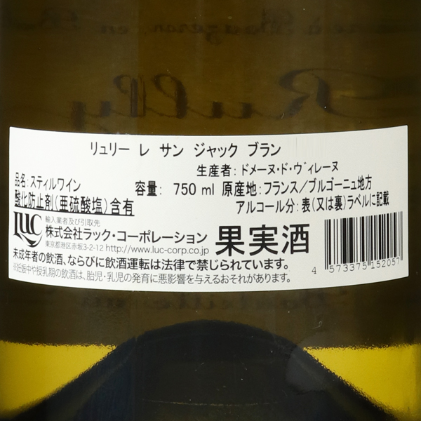 リュリーで最も有名な1級畑のひとつ、クロ・サン・ジャックの真下に位置する東向きの畑。コート・ドールの古木から選抜した苗木が植えられ、収量が抑えられている。大樽と小樽を併用して醸造し、新樽は一切使わないため、香りも味わいもデリケートなスタイルの白ワイン。合わせる料理も繊細なものがおすすめ。アロマティックな濃縮感以上に、このリュリーは優雅さと繊細さをまといテロワールを体現している。使用品種:シャルドネ