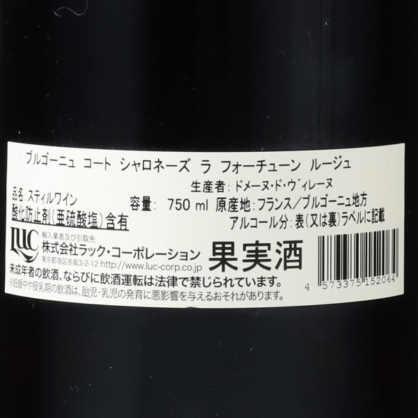 ブルゴーニュ・コートシャロネーズ・フォルテュンヌ 2015 / ドメーヌ・ド・ヴィレーヌ