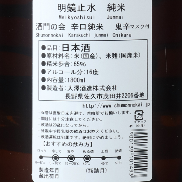 様々なすばらしい人との出会いによって育ったお酒元禄2年、1689年に創業。明鏡止水とは、『明鏡』はきれいに磨いた鏡のこと、『止水』は静止した水をいいます。つまり、一点の曇りもないまでに磨き上げられた鏡や静止して揺るがない水面のような研ぎ澄まされた心境であり、邪念がなく澄み切った心をさします。米から造る酒である以上、米の旨みがある個性の強い酒つくりをし、少しでも多くの方々に日本酒を好きになっていただく努力を怠らないことを常に心掛けています。