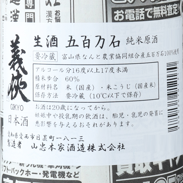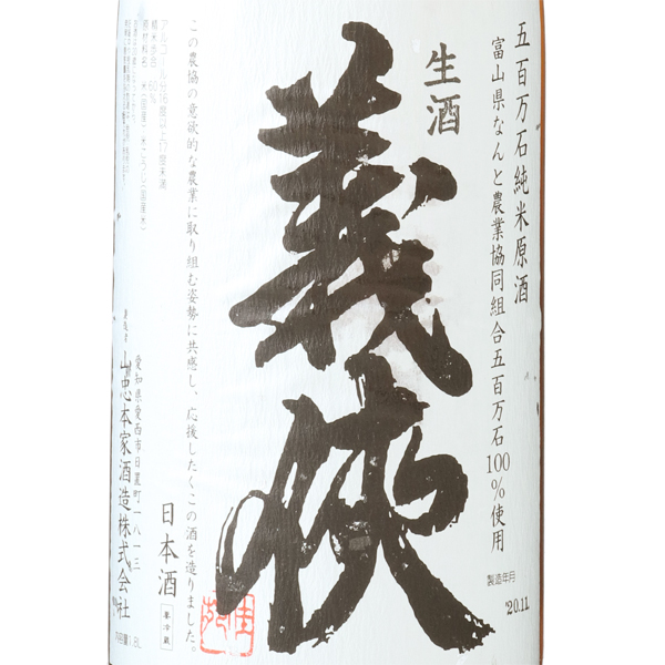 義侠の人気商品の一つ、富山県南砺産五百万石を使って醸した冬季限定の生酒。新酒特有の若々しいふくらみのある米の甘い香りに麹、パイナップルなどを思わせるフレッシュな香りが絡みます。口当たりはスッキリしつつも米由来の旨味の力強さが際立ち、後口にはほろ苦さがアクセントになり味わいを引き立てつつ、爽やかな酸で全体をまとめます。蔵紹介