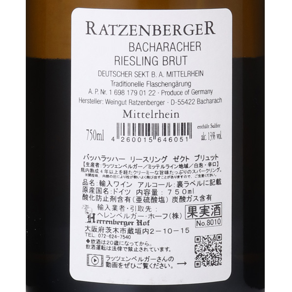 「リースリングの魔術師」として名を馳せるラッツェンベルガー。瓶内二次発酵、5年以上熟成!ゼクトとアイスワイン専用の標高の高い畑の葡萄を使用しています。昔ながらの手で動瓶をしたり、ドサージュには10年熟成したリースリングのアウスレーゼを使用する等、随所にこだわりが感じられます。泡はキメ細かくクリーミーで、品種ならではの果実味を感じる柔らかな泡。さすがはこの造り手の看板ゼクトでもあり、旨みが強く、熟成感も楽しめる素晴らしい味わいです。蔵紹介