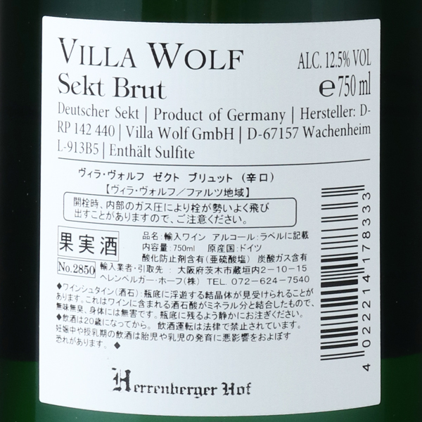 1996年に「Dr.ローゼン醸造所」のオーナーであるモーゼルの銘醸造家エルンスト・ローゼン氏が、衰退傾向にあったJ.L.ヴォルフ醸造所の経営を引き継ぎ、ヴィラ・ヴォルフ醸造所と改名。現在、日系2世の女性醸造家スミ・ゲヴァウアーさんが責任者を務め、手頃な価格ながら高い品質の味わいが注目を集めています。