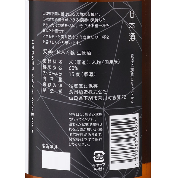 日本酒が苦手な人でも感動する極上の一杯をかつて「菊川」という銘柄を下関の土地で醸していた児玉酒造。製造量減少に伴い、自社での製造を長く停止していました。長州産業株式会社が事業継承する形で長州酒造が誕生。「天美」は、稲作と深い関わりのある日本古来の神「天照(あまてらす)」と、酒を意味する 「美禄」から1文字ずつ頂戴し命名されました。