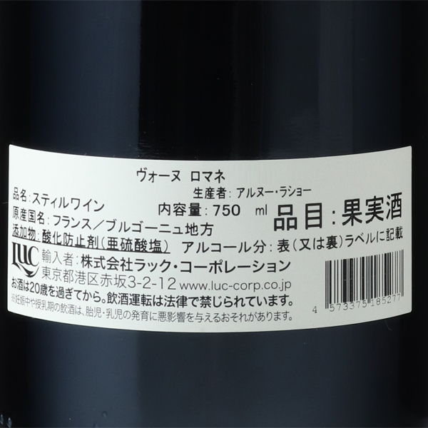 ブドウ栽培はリュット・レゾネ。手摘みでブドウを収穫し、ブドウは破砕せずに低温マセレーションの後、ステンレスタンクで自然発酵。樽熟成期間は平均14ヶ月で、新樽の比率は村名で20〜25%、一級畑で30〜50%。特級は100%新樽だが、ヴォーヌ・ロマネ1級のオー・レニョとレ・シュショにも100%の新樽を用いている。こうして造られるアルヌー・ラショーのワインは、なんといってもバランスがよい。果実味が過ぎたり、樽香が強すぎることもなく、しかし、十分な凝縮感を伴っている。