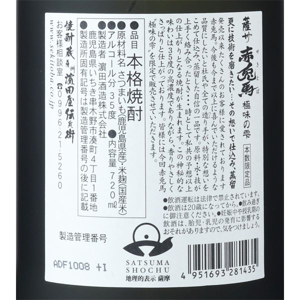 薩州赤兎馬 極味の雫 芋焼酎 35度 / 薩州濱田屋伝兵衛