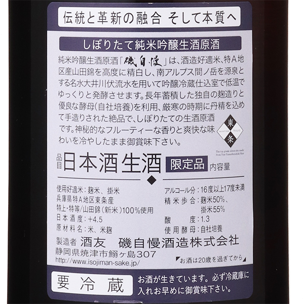 磯自慢 しぼりたて 純米吟醸 生原酒