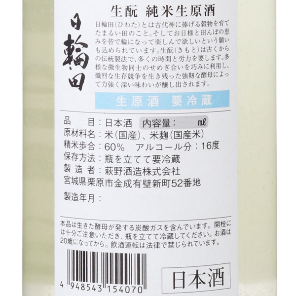 今年は令和2年にデビューした宮城県の酒造好適米 吟のいろはを使用しました。しぼりたてならではのフレッシュな味わいと、生もと由来の深い味わいをお楽しみください。注意事項