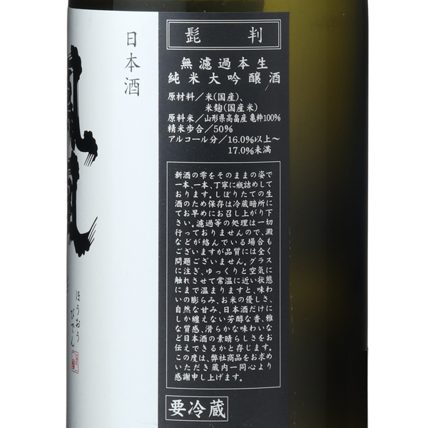幻の酒米 亀の尾から選抜育種を重ねて開発された山形の酒米「亀粋(きっすい)」で醸した純米大吟醸です。亀粋の籾には亀の尾と同じ様に古代米の特徴である野毛(のげ)という鬚の様なものが生えているため、この鳳凰美田だけ鬚文字で書かれています。鳳凰美田らしい華やかな吟醸香が香り、しっかりとした旨味と甘味が絶妙なバランスで引き出されており、一口の満足度の高いお酒に仕上がっています。蔵紹介