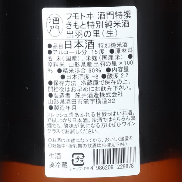 技術と経験に裏打ちされた「うまさのための」きもと造り普通酒から大吟醸酒に至るすべてがきもと造りで造られています。きもと造りは古来からの日本酒の造り方で、仕込み水や空気中に存在する微生物の作用によりお酒のもと「酒母」をつくりお酒を醸す方法です。 酒造りの理論が確立されていない時代、目に見えない微生物の働きに全てをゆだねるきもと造りは一度すたれましたが、現在は理論もきちんと確立され、「きもと造り」を復活させる蔵が増えています。その中で麓井酒造は、「きもと造りはおいしいお酒を造るための技術の一つ」と考え醸しています。すべての造りをきもと造りで行うことも、あくまで手段としてのきもと造りであり、伊達や酔狂ではないことの証です。