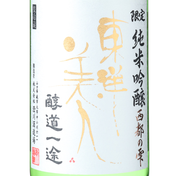 「醇道一途(じゅんどういちず)」、この言葉は、何があろうと今もこれからも酒造り一筋に生きていきなさい。と社長兼杜氏の澄川宜史氏が、初めて教えを請うた、灘の銘杜氏の米田杜氏に頂いた言葉です。「原点」から「一歩」を踏み出して、これからは「醇道一途」の気持ちで酒造りに精進しています。柔らかな口当たりと、すっきりとした甘みが特徴の山口県オリジナル酒米である西都の雫を使用。月替わりで様々な種類の酒米を使い醸されるこちらのシリーズは、「東洋美人」の華やかな酒質の中にそれぞれの酒米の特徴が的確に表現されています。長年酒造りに真摯に向き合ってきた澄川氏にしか出せない印象的な味わいを是非お楽しみください。