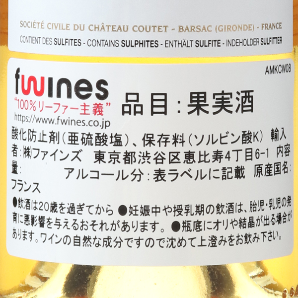 ソーテルヌ地区バルサック村のプルミエ グランク リュ クラッセ。優雅で上品な甘味を持ち味とするバルサックの典型的な貴腐ワインで、貴腐ならではの凝縮された果実の甘味と、ほどよい樽香とのバランスも絶妙です。平均樹齢は35年。木樽で約16-18ヶ月熟成。使用品種:セミヨン 75%、ソーヴィニヨン ブラン 23%、ミュスカデル 2%