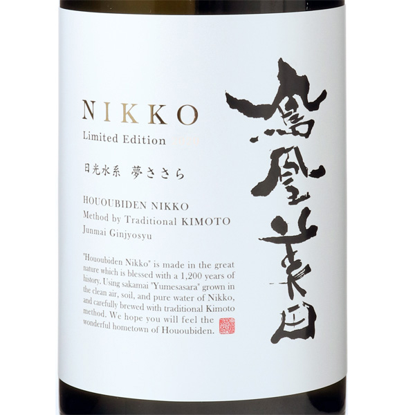 世界遺産「日光」の“水”を大きなテーマとした鳳凰美田のNIKKO。日光の雄大な自然、超軟水の日光水系により栽培、育まれた栃木県の酒米の夢ささらを使用し、その水源の“源泉水”を仕込水とし伝統技法である生もと造りにて丁寧に醸した一本です。日光の自然、農、蔵が一つとなり、この厳しくも恵まれた日光のテロワールでしか表現できない瑞々しい純米吟醸酒をお届けしています。蔵紹介