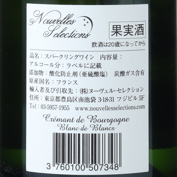 コート・ド・ボーヌとオート・コート・ド・ボーヌ産のシャルドネ100%。平均樹齢20年。収穫量65hl/ha。シャンパーニュ方式。12ヶ月間以上瓶熟成。ドザージュは8g/l。2003年5月に催された「ジュヴレ・シャンベルタン移転記念パーティー」において、アンリ・ジャイエ氏がこのクレマンを絶賛しました。蔵紹介