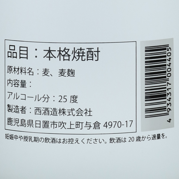 一粒の麦 furingo ふうりんご 麦焼酎 25度 / 西酒造