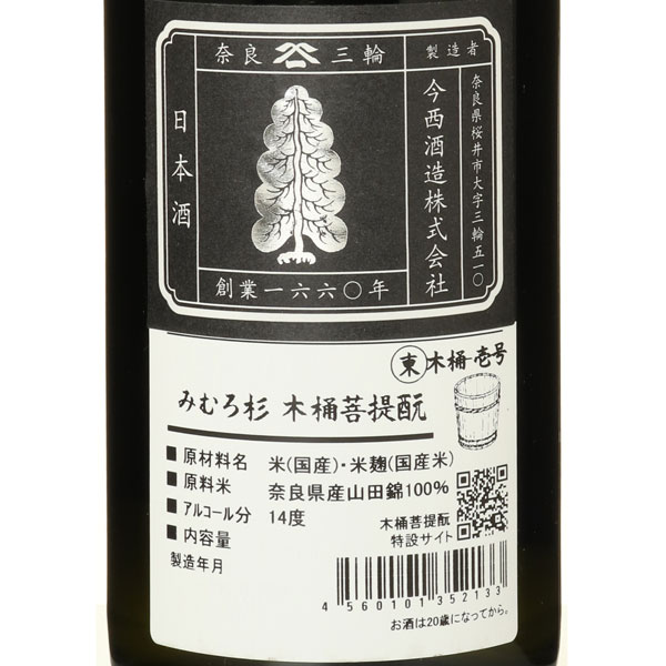 みむろ杉の醸造哲学は「清く、正しい、酒造り」。追求されつくした透明でなめらかな飲み口に加え、そやし水由来の力強さと厚みのある味わい、そして木桶に棲みつく微生物が生み出す複雑味と香り。一見相反する要素が酒の神が宿る三輪の仕込みのちからで、絶妙な調和を醸します。すべての工程を機械化せず、自然をそのまま活かす醸造手法の「みむろ杉 木桶菩提もと」にはその年の自然、さらに木桶ごとに異なる個性が楽しめます。