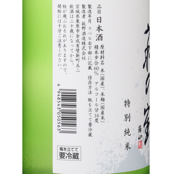 萩の鶴 特別純米 無濾過生原酒 しぼりたて