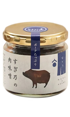宮崎のあじ豚や奈良のヤマトポークなど、国産ポークのミンチ肉と白ねぎを、味噌、かつおぶし粉、豆板醤、生姜、にんにくなどの調味料で丁寧に煮込んだ手作りの肉味噌です。豚肉をたっぷり煮込んでいますので、肉好きを虜にすること間違いなし!