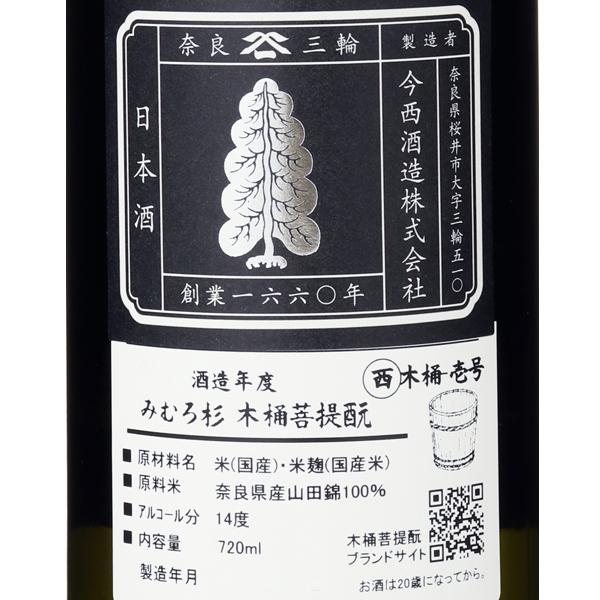 みむろ杉の醸造哲学は「清く、正しい、酒造り」。追求されつくした透明でなめらかな飲み口に加え、そやし水由来の力強さと厚みのある味わい、そして木桶に棲みつく微生物が生み出す複雑味と香り。一見相反する要素が酒の神が宿る三輪の仕込みのちからで、絶妙な調和を醸します。すべての工程を機械化せず、自然をそのまま活かす醸造手法の「みむろ杉 木桶菩提もと」にはその年の自然、さらに木桶ごとに異なる個性が楽しめます。