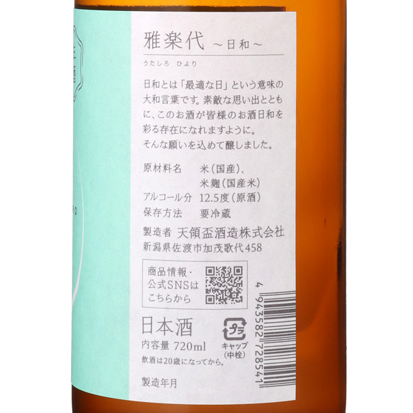 佐渡の地で天領盃酒造が目指すスタイルは、「新しい新潟淡麗」。佐渡のやわらかな天然水と農家さんの努力が詰まった減農薬米によって造られた、キレイで軽くフレッシュなお酒――雅楽代を通じ、時代の変化に合わせてアップデートした「新しい新潟淡麗」を表現していきたいと、日々酒造りを行っています。