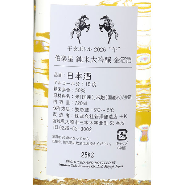 伯楽星 純米大吟醸 2026年干支ボトル 金箔酒 *クール便のみ