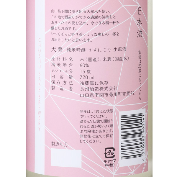日本酒が苦手な人でも感動する極上の一杯をかつて「菊川」という銘柄を下関の土地で醸していた児玉酒造。製造量減少に伴い、自社での製造を長く停止していました。長州産業株式会社が事業継承する形で長州酒造が誕生。「天美」は、稲作と深い関わりのある日本古来の神「天照(あまてらす)」と、酒を意味する 「美禄」から1文字ずつ頂戴し命名されました。