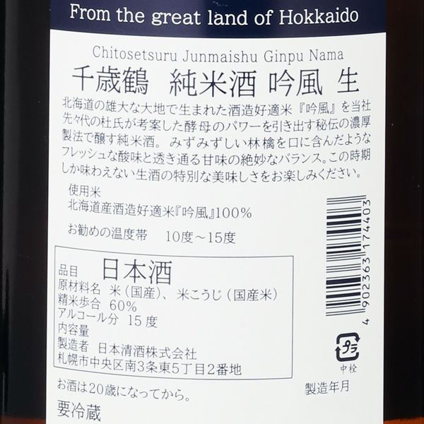 日本酒のニューワールド北海道「千歳鶴」明治5年、1872年創業。創成川のほとりで造り酒屋「柴田酒造店」を開店。当時、北海道で飲まれていた酒のほとんどが本州で造られており、柴田酒造店は北海道の酒造業の先駆けと言われています。昭和3年に8企業を合同し、「日本清酒株式会社」が誕生。統一銘柄を「千歳鶴」としました。蔵があるのは、札幌の中心部。札幌の母なる川、豊平川の伏流水を創業以来使用、この水こそ今や190万人を抱える札幌の都心で唯一の酒蔵として酒造りを続ける理由とも言えます。