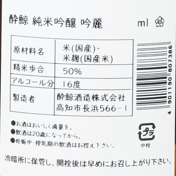 酔鯨 純米吟醸 吟麗 くじらラベル 春ver.