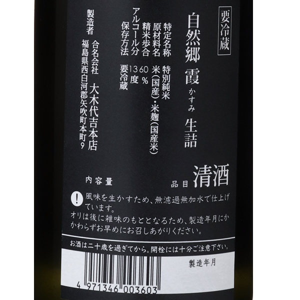 搾りたて・無濾過無加水の特別純米。シルクのようなオリをまとった霞酒です。お米本来の旨さ、甘さを残しつつ、フルーティーでキレがよい飲み口に仕上がっています。また、13度の低アルコールにて軽やかな味わいになりました。蔵紹介