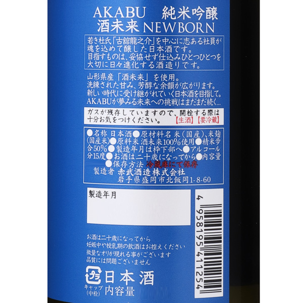 【予約商品】3月25日以降 出荷予定 AKABU 純米吟醸 酒未来 NEWBORN 生酒