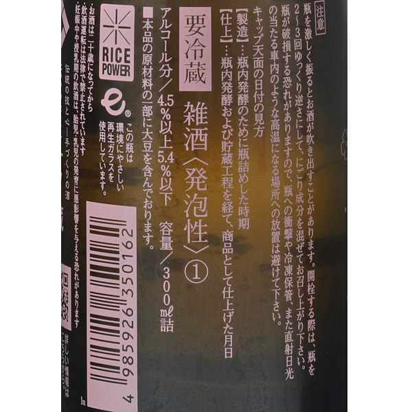 瓶内2次発酵というシャンパンの手法で作られるスパークリング日本酒「すず音」をベースに、宮城県大崎産の黒豆と紫黒米から抽出した色素で、ほのかなピンク色のお酒に仕上げました。ブルーベリーを連想させる香りと甘酸っぱさ、膨らみのある甘さが口中に広がります。乾杯にぴったりなのはもちろんのこと、食後の軽いデザートとしてのフルーツやスイーツにもよく合います。パーティに花めくすず音とお洒落なスイーツを持参すればとても盛り上がること間違いなしです。注意事項